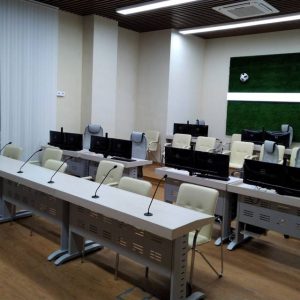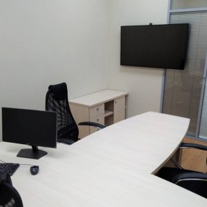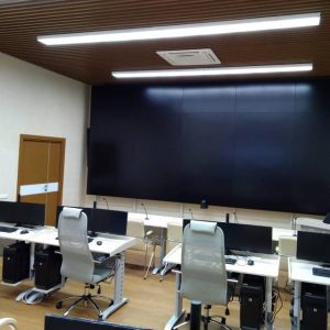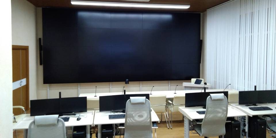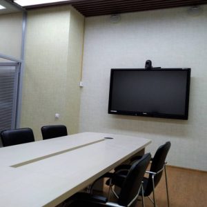 Для проведения оперативных совещаний оборудована отдельная переговорная комната с сенсорным дисплеем диагональю 70”, видеоконференцсвязью и комплектом звукоусиления. Также выполнено оснащение кабинета руководителя и помещения холла.