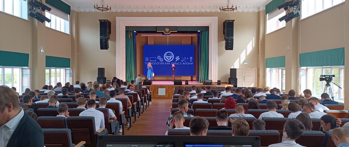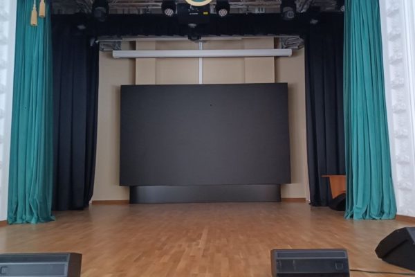 Основной задачей было создать современную систему отображения информации, которая одинаково эффективно справлялась бы как с демонстрацией учебных материалов (графиков, чертежей, презентаций), так и с созданием визуальных эффектов во время концертов и театральных постановок. Важным требованием стало высокое качество изображения и возможность комфортной фото- и видеосъемки мероприятий без искажений.