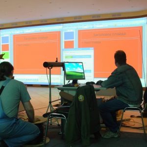 Самой большой сложностью в данном проекте было создание ровного, бесшовного изображения на всей поверхности экрана. Именно на это, на физическое сведение 8 проекторов, а также на выравнивание цветовых параметров ушло весьма впечатляющее количество времени.